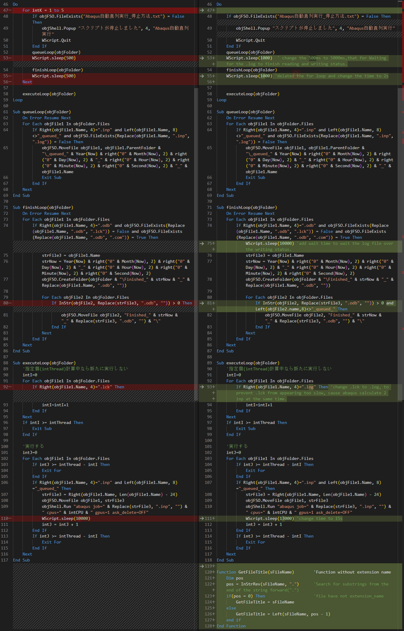 queueLoop, I change the sleep time 500ms to 3000ms, that for Waiting for the.logto finish reading and writing status. - I delated the For loop with 54 to 63 row and change the sleep time to 2000ms after