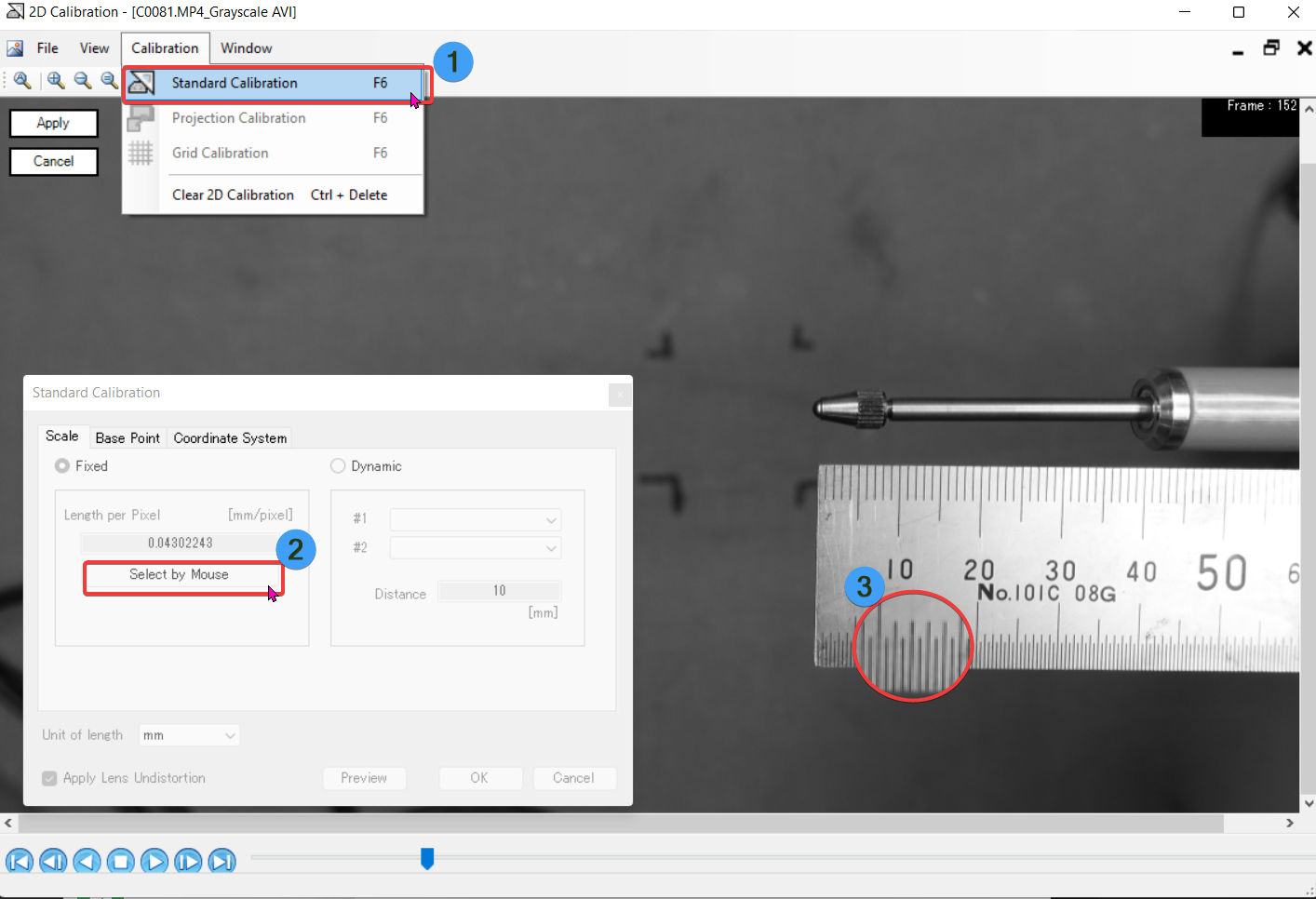 - 定規を被写体の横に付ける.(画像のキャリブレーション)
