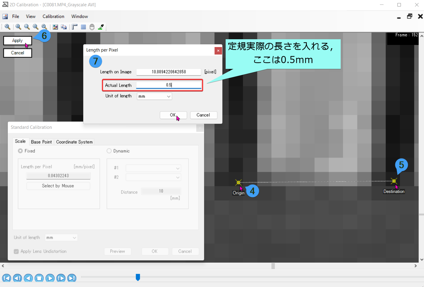 - 実際の距離を入れる.ピクセル距離は自動で換算してくれる.