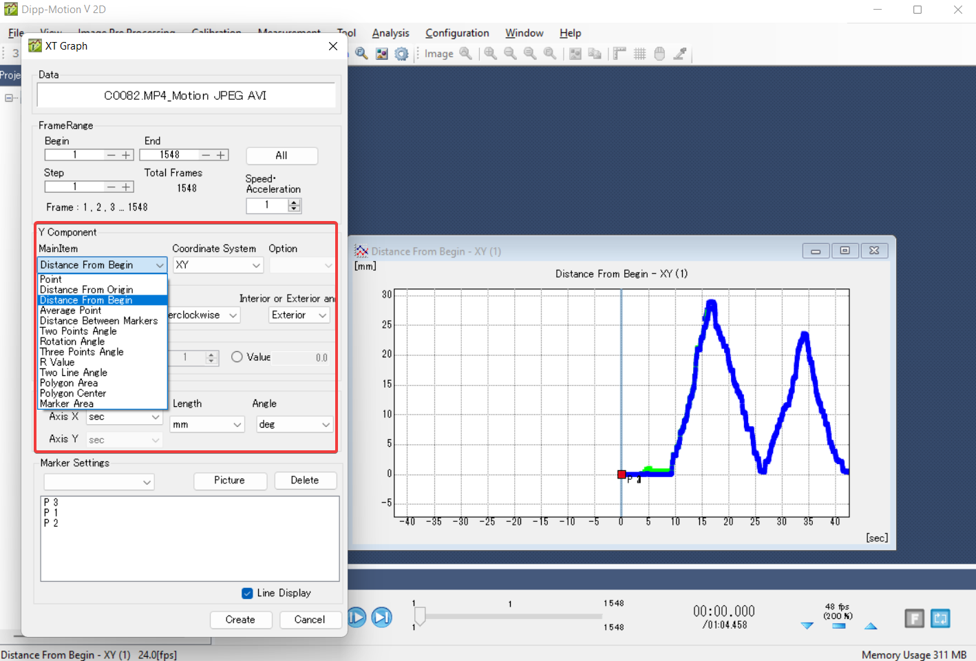 今回は一個の点の絶対移動量を取得したいため, XY座標系における最初からの距離を選択した.