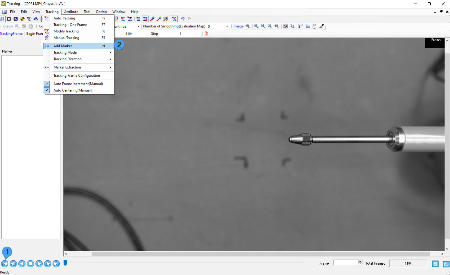 0.5or1mm を指定する) - 追尾項目で被写体にマーカを設置する